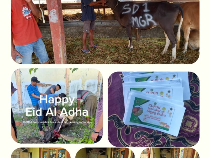 Qurban (kurban) adalah ibadah dalam ajaran Islam berupa menyembelih hewan tertentu pada waktu tertentu sebagai bentuk ketaatan dan pendekatan diri kepada Allah SWT. Pada tahun ini Alhamdulillah siswa siswi beserta dewan guru SDN 1 Mangaran dimampukan berqurban 1 ekor sapi. Selanjutnya daging qurban dibagikan kepada anak yatim, orang tidak mampu, dan warga sekitar wilayah sekolah.